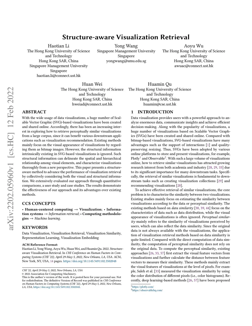 With the wide usage of data visualizations, a huge number of Scalable Vector Graphic (SVG)-based visualizations have been created and shared online. Accordingly, there has been an increasing interest in exploring how to retrieve perceptually similar visualizations from a large corpus, since it can benefit various downstream applications such as visualization recommendation. Existing methods mainly focus on the visual appearance of visualizations by regarding them as bitmap images. However, the structural information intrinsically existing in SVG-based visualizations is ignored. Such structural information can delineate the spatial and hierarchical relationship among visual elements, and characterize visualizations thoroughly from a new perspective. This paper presents a structure-aware method to advance the performance of visualization retrieval by collectively considering both the visual and structural information. We extensively evaluated our approach through quantitative comparisons, a user study and case studies. The results demonstrate the effectiveness of our approach and its advantages over existing methods.