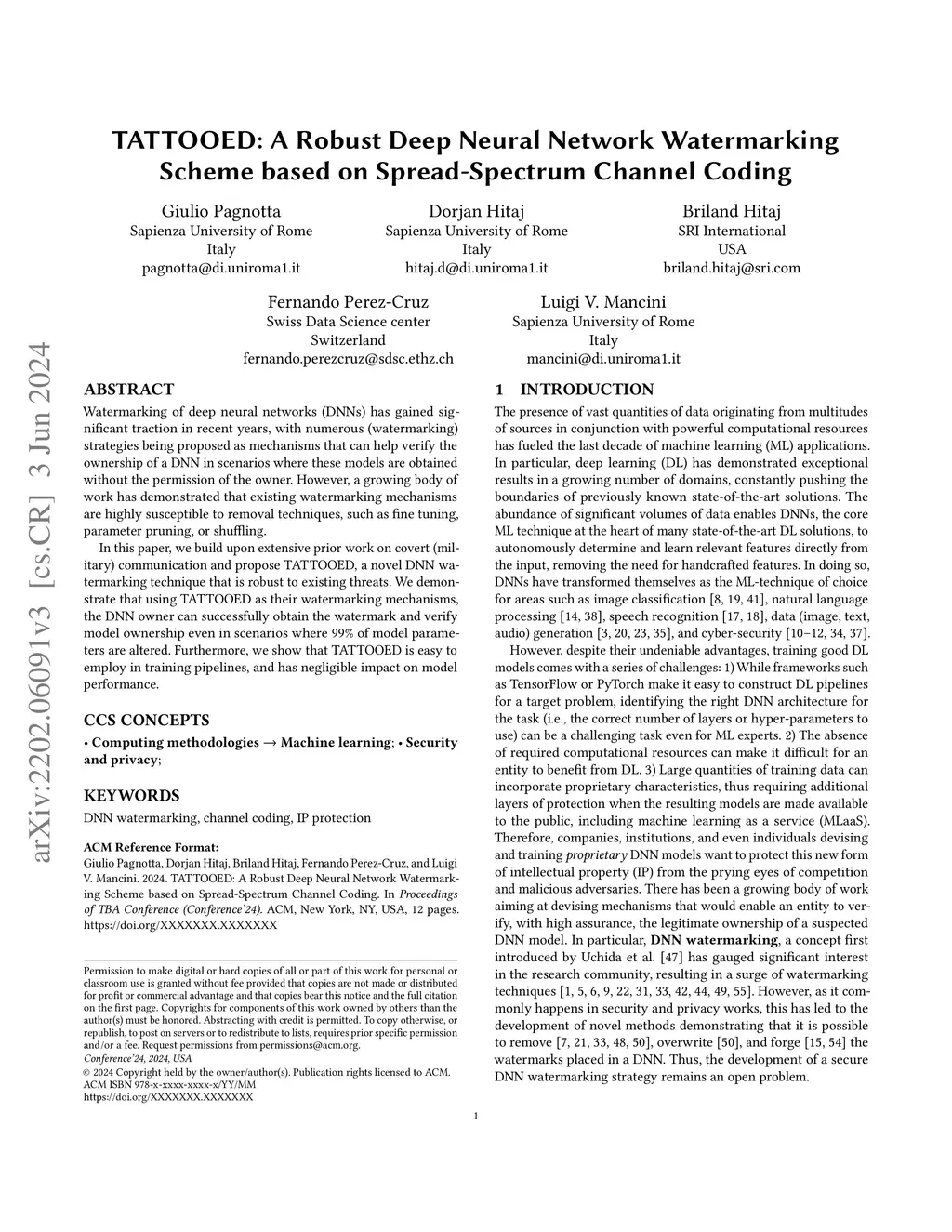 TATTOOED: A Robust Deep Neural Network Watermarking Scheme based on