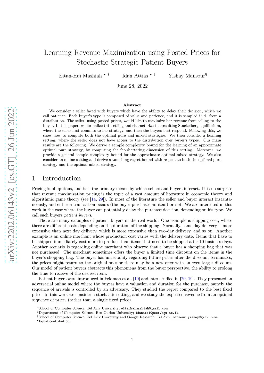 We consider a seller faced with buyers which have the ability to delay their decision, which we call patience. Each buyer's type is composed of value and patience, and it is sampled i.i.d. from a distribution. The seller, using posted prices, would like to maximize her revenue from selling to the buyer. In this paper, we formalize this setting and characterize the resulting Stackelberg equilibrium, where the seller first commits to her strategy, and then the buyers best respond. Following this, we show how to compute both the optimal pure and mixed strategies. We then consider a learning setting, where the seller does not have access to the distribution over buyer's types. Our main results are the following. We derive a sample complexity bound for the learning of an approximate optimal pure strategy, by computing the fat-shattering dimension of this setting. Moreover, we provide a general sample complexity bound for the approximate optimal mixed strategy. We also consider an online setting and derive a vanishing regret bound with respect to both the optimal pure strategy and the optimal mixed strategy.