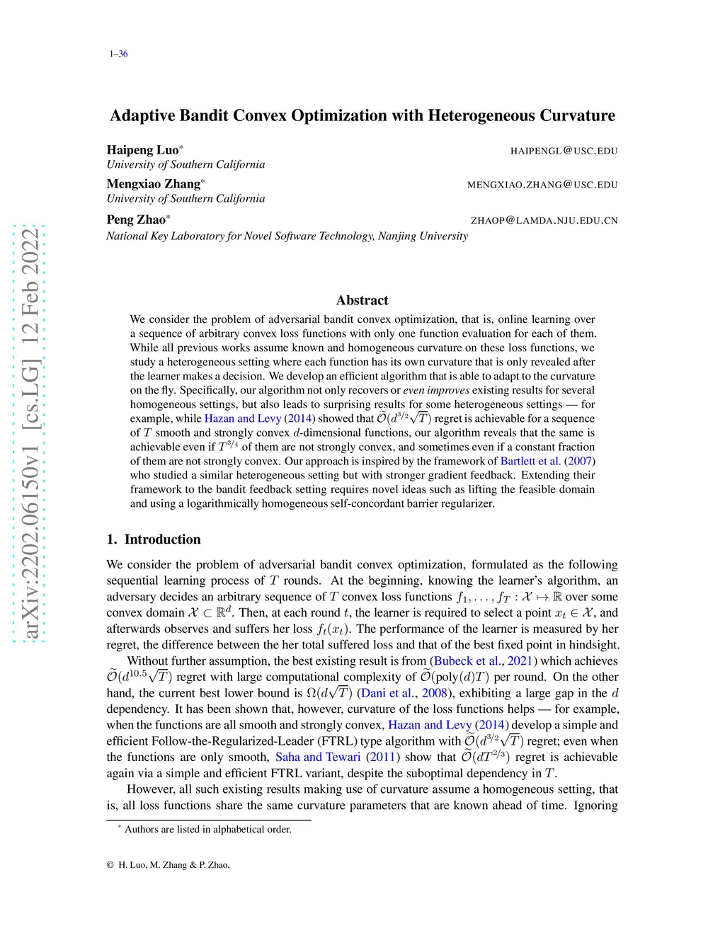 Adaptive Bandit Convex Optimization with Heterogeneous Curvature