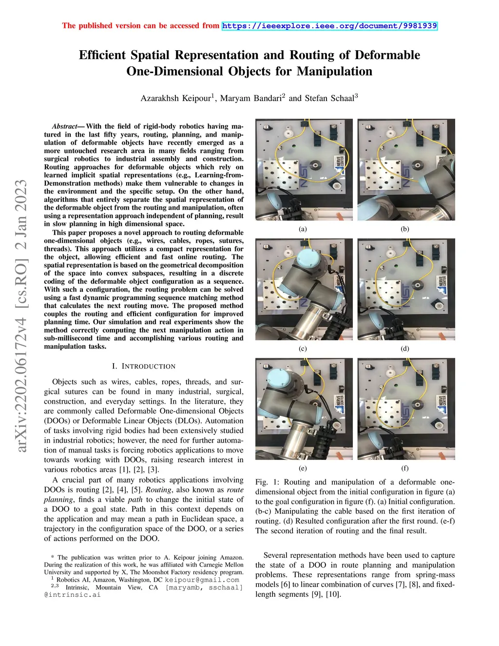 With the field of rigid-body robotics having matured in the last fifty years, routing, planning, and manipulation of deformable objects have emerged in recent years as a more untouched research area in many fields ranging from surgical robotics to industrial assembly and construction. Routing approaches for deformable objects which rely on learned implicit spatial representations (e.g., Learning-from-Demonstration methods) make them vulnerable to changes in the environment and the specific setup. On the other hand, algorithms that entirely separate the spatial representation of the deformable object from the routing and manipulation, often using a representation approach independent of planning, result in slow planning in high dimensional space. This paper proposes a novel approach to spatial representation combined with route planning that allows efficient routing of deformable one-dimensional objects (e.g., wires, cables, ropes, threads). The spatial representation is based on the geometrical decomposition of the space into convex subspaces, which allows an efficient coding of the configuration. Having such a configuration, the routing problem can be solved using a dynamic programming matching method with a quadratic time and space complexity. The proposed method couples the routing and efficient configuration for improved planning time. Our tests and experiments show the method correctly computing the next manipulation action in sub-millisecond time and accomplishing various routing and manipulation tasks.