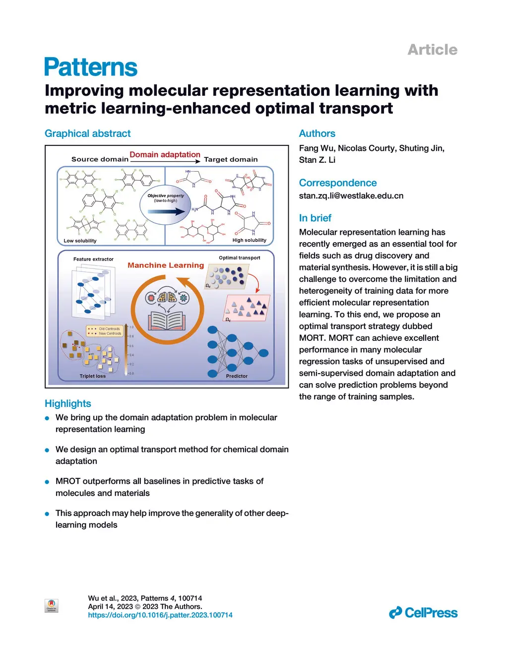 Training data are usually limited or heterogeneous in many chemical and biological applications. Existing machine learning models for chemistry and materials science fail to consider generalizing beyond training domains. In this article, we develop a novel optimal transport-based algorithm termed MROT to enhance their generalization capability for molecular regression problems. MROT learns a continuous label of the data by measuring a new metric of domain distances and a posterior variance regularization over the transport plan to bridge the chemical domain gap. Among downstream tasks, we consider basic chemical regression tasks in unsupervised and semi-supervised settings, including chemical property prediction and materials adsorption selection. Extensive experiments show that MROT significantly outperforms state-of-the-art models, showing promising potential in accelerating the discovery of new substances with desired properties.