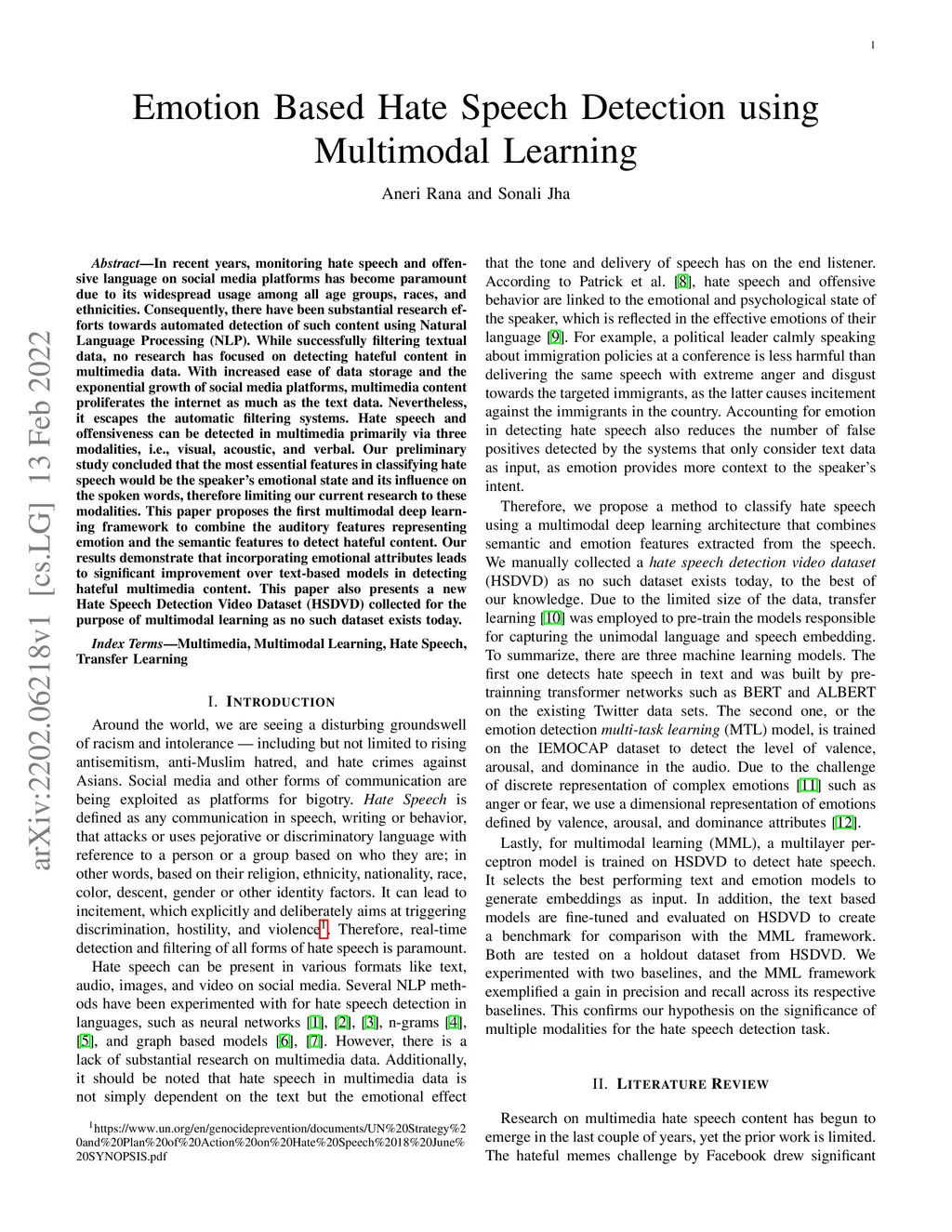 Emotion Based Hate Speech Detection using Multimodal Learning