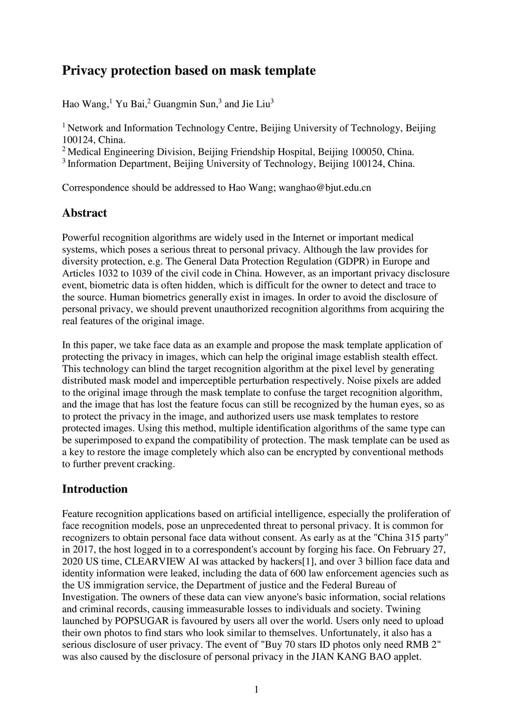 Powerful recognition algorithms are widely used in the Internet or important medical systems, which poses a serious threat to personal privacy. Although the law provides for diversity protection, e.g. The General Data Protection Regulation (GDPR) in Europe and Articles 1032 to 1039 of the civil code in China. However, as an important privacy disclosure event, biometric data is often hidden, which is difficult for the owner to detect and trace to the source. Human biometrics generally exist in images. In order to avoid the disclosure of personal privacy, we should prevent unauthorized recognition algorithms from acquiring the real features of the original image.