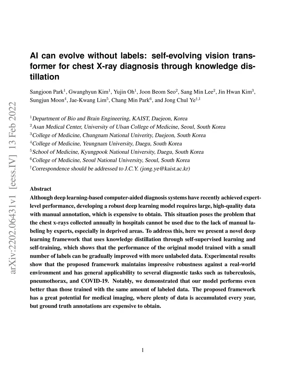 AI can evolve without labels: self-evolving vision transformer for chest