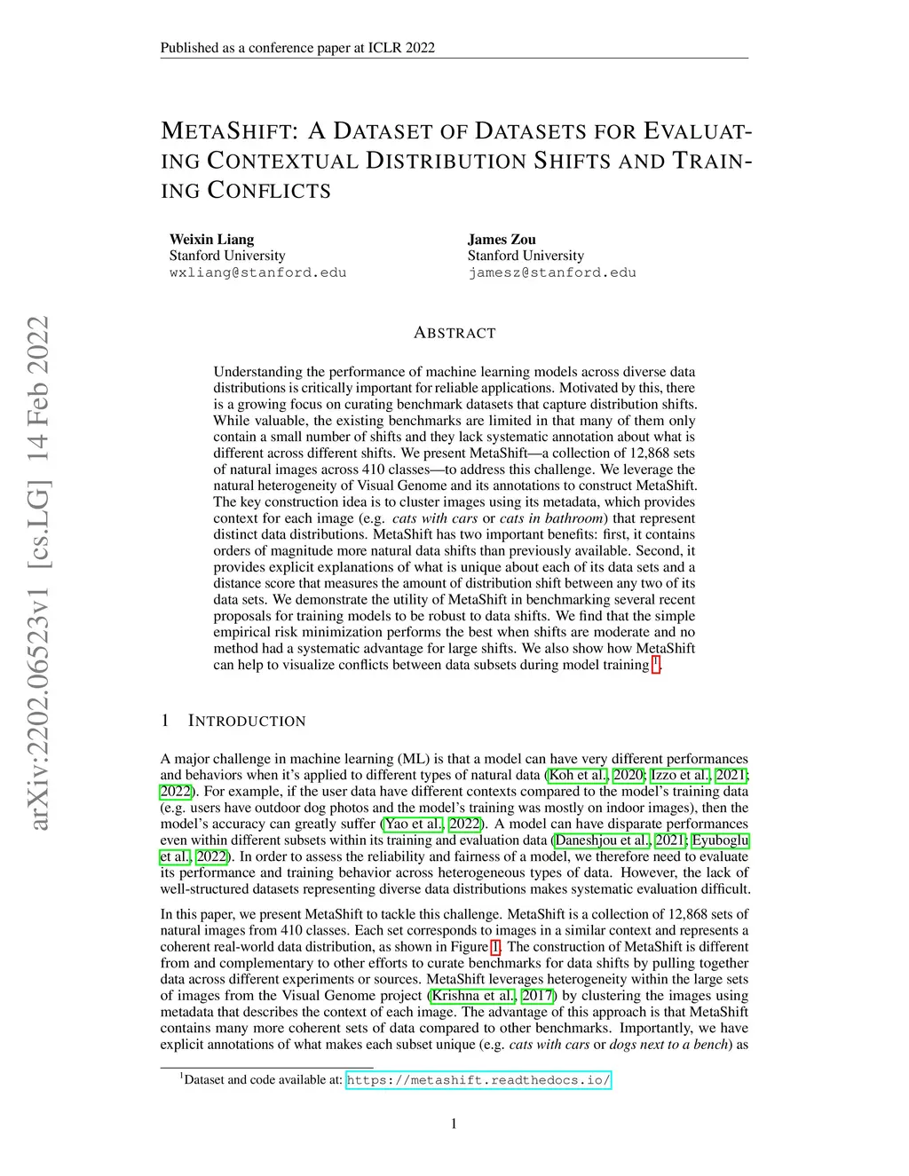 MetaShift: A Dataset of Datasets for Evaluating Contextual Distribution