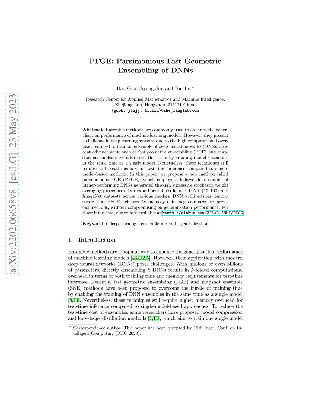 PFGE: Parsimonious Fast Geometric Ensembling of DNNs