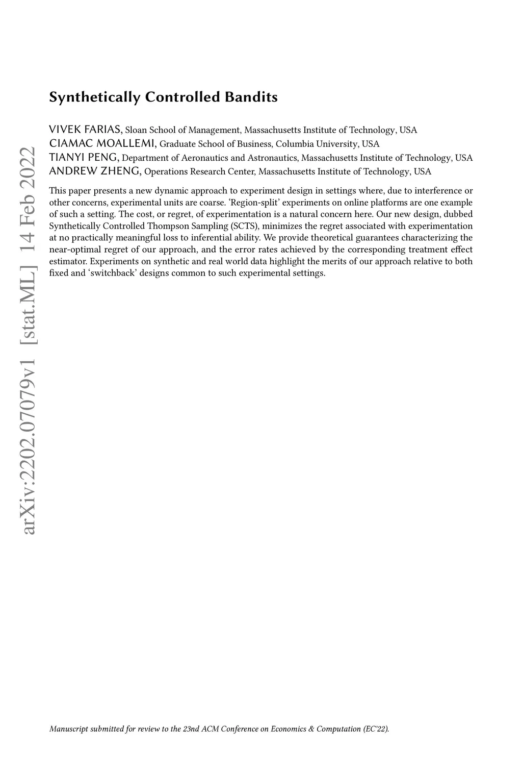 This paper presents a new dynamic approach to experiment design in settings where, due to interference or other concerns, experimental units are coarse. `Region-split' experiments on online platforms are one example of such a setting. The cost, or regret, of experimentation is a natural concern here. Our new design, dubbed Synthetically Controlled Thompson Sampling (SCTS), minimizes the regret associated with experimentation at no practically meaningful loss to inferential ability. We provide theoretical guarantees characterizing the near-optimal regret of our approach, and the error rates achieved by the corresponding treatment effect estimator. Experiments on synthetic and real world data highlight the merits of our approach relative to both fixed and `switchback' designs common to such experimental settings.