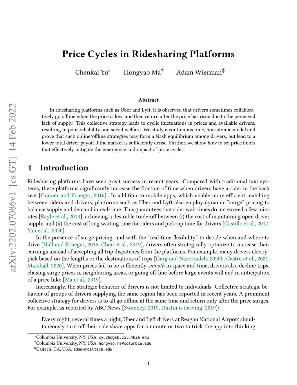 Price Cycles in Ridesharing Platforms
