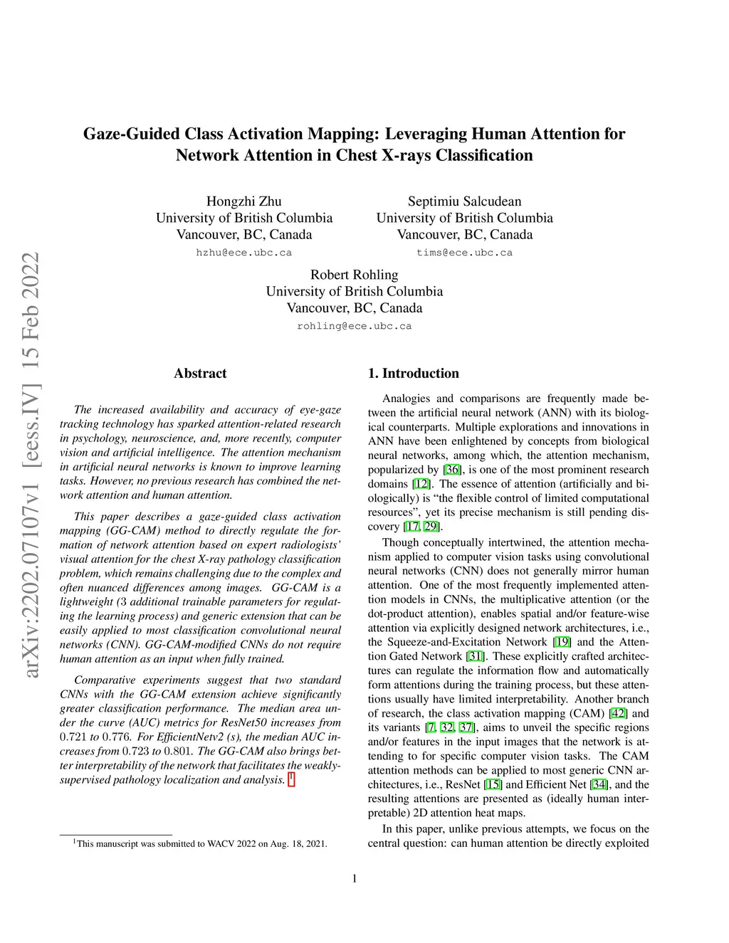 The increased availability and accuracy of eye-gaze tracking technology has sparked attention-related research in psychology, neuroscience, and, more recently, computer vision and artificial intelligence. The attention mechanism in artificial neural networks is known to improve learning tasks. However, no previous research has combined the network attention and human attention. This paper describes a gaze-guided class activation mapping (GG-CAM) method to directly regulate the formation of network attention based on expert radiologists' visual attention for the chest X-ray pathology classification problem, which remains challenging due to the complex and often nuanced differences among images. GG-CAM is a lightweight ( additional trainable parameters for regulating the learning process) and generic extension that can be easily applied to most classification convolutional neural networks (CNN). GG-CAM-modified CNNs do not require human attention as an input when fully trained. Comparative experiments suggest that two standard CNNs with the GG-CAM extension achieve significantly greater classification performance. The median area under the curve (AUC) metrics for ResNet50 increases from to . For EfficientNetv2 (s), the median AUC increases from to . The GG-CAM also brings better interpretability of the network that facilitates the weakly-supervised pathology localization and analysis.