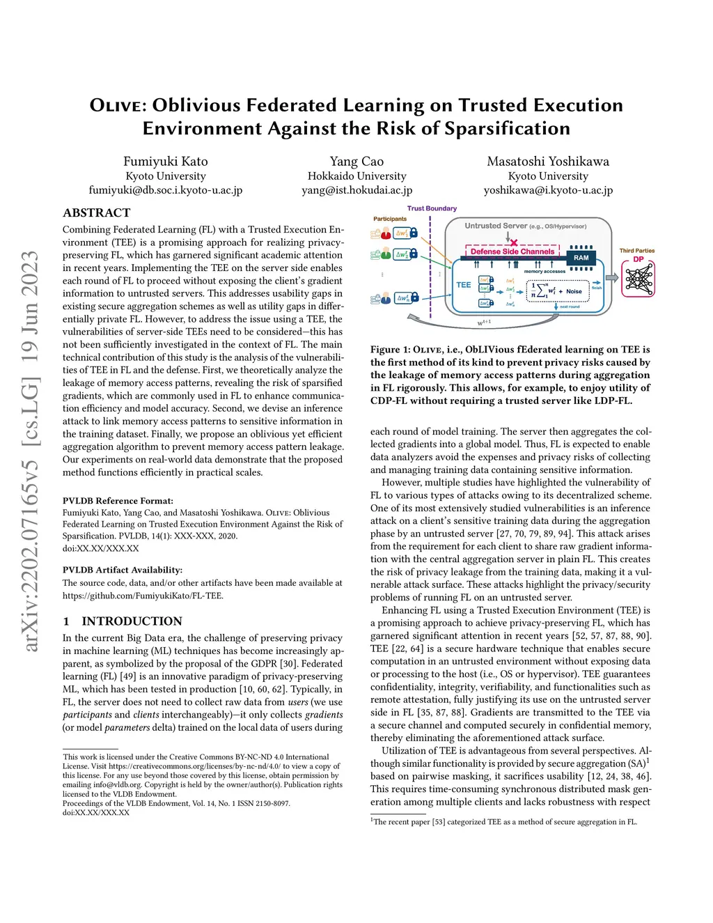 OLIVE: Oblivious Federated Learning on Trusted Execution Environment