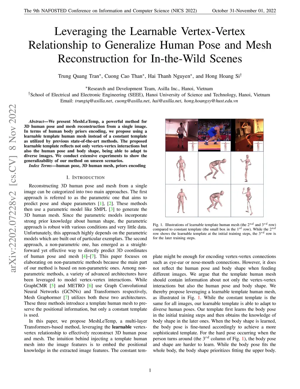 We present MeshLeTemp, a powerful method for 3D human pose and mesh reconstruction from a single image. In terms of human body priors encoding, we propose using a learnable template human mesh instead of a constant template as utilized by previous state-of-the-art methods. The proposed learnable template reflects not only vertex-vertex interactions but also the human pose and body shape, being able to adapt to diverse images. We conduct extensive experiments to show the generalizability of our method on unseen scenarios.