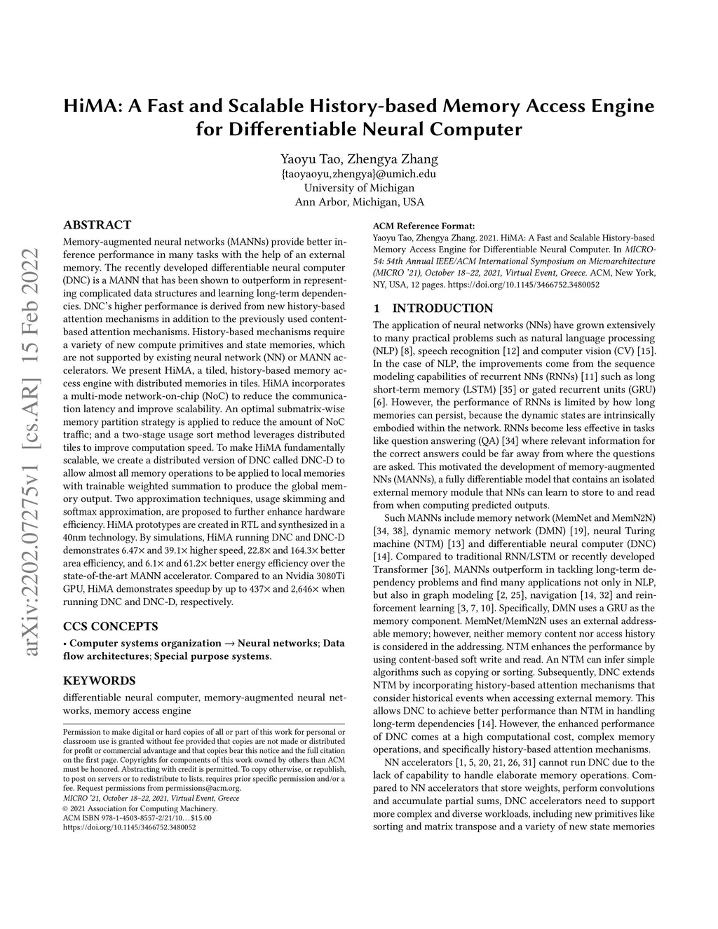 HiMA: A Fast and Scalable History-based Memory Access Engine for