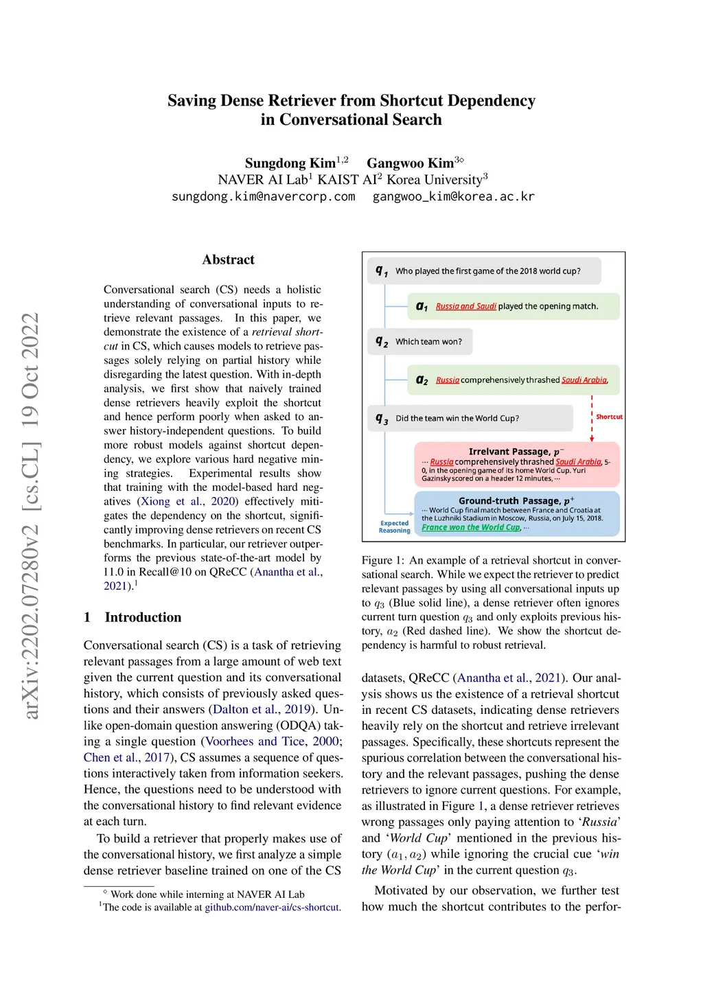 Saving Dense Retriever from Shortcut Dependency in Conversational Search