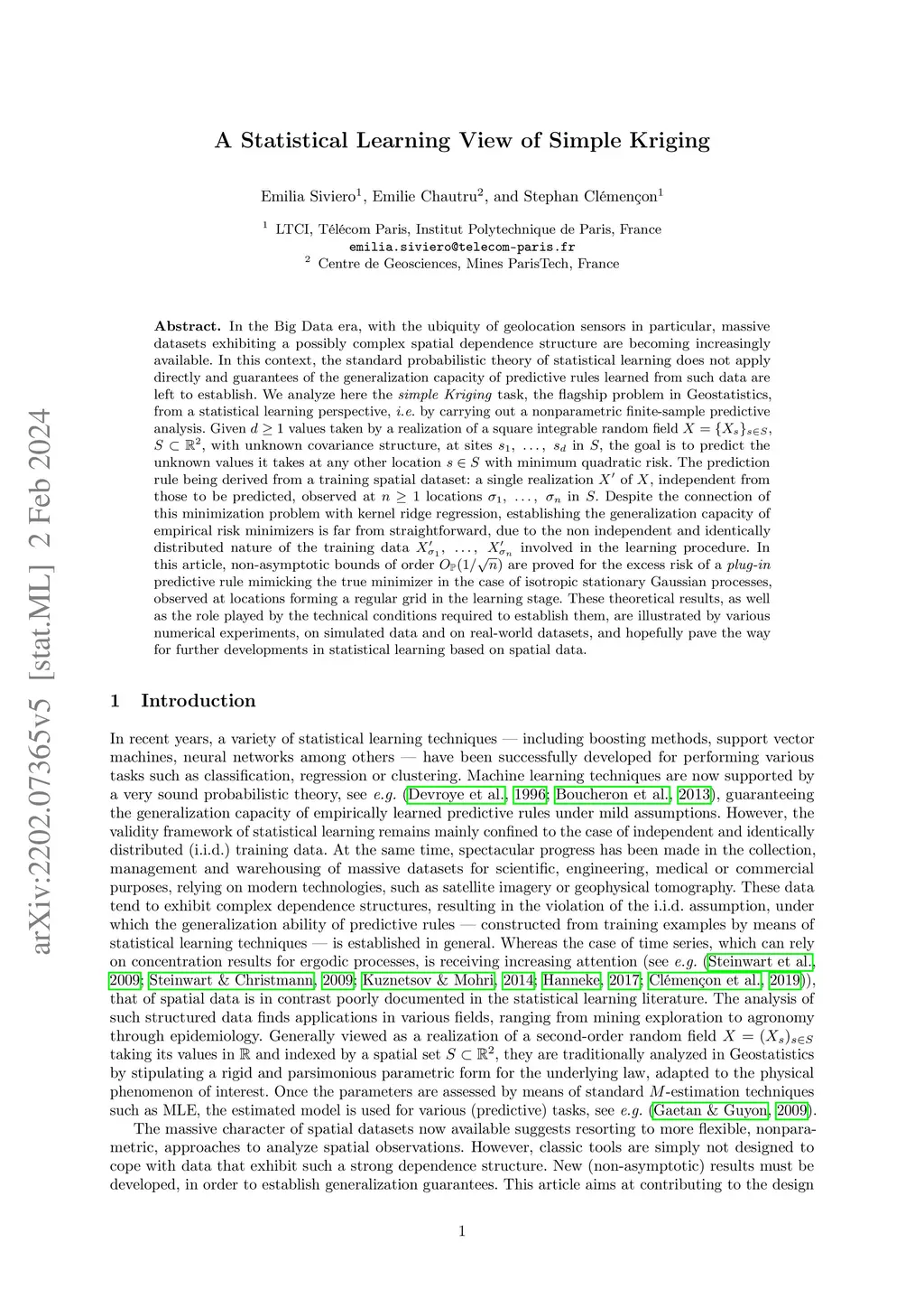 A Statistical Learning View of Simple Kriging
