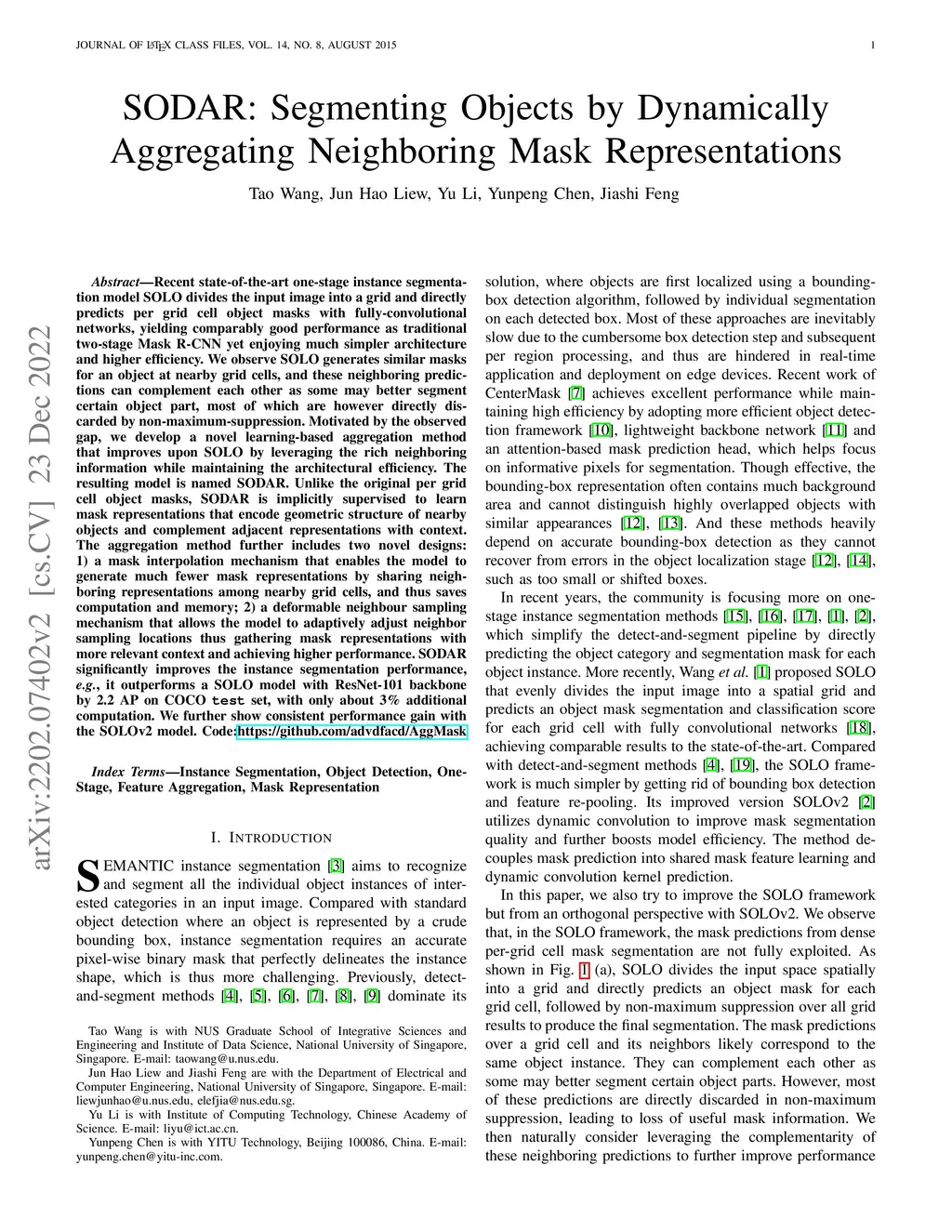 SODAR: Segmenting Objects by DynamicallyAggregating Neighboring Mask