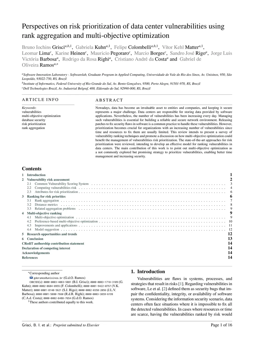 Nowadays, data has become an invaluable asset to entities and companies, and keeping it secure represents a major challenge. Data centers are responsible for storing data provided by software applications. Nevertheless, the number of vulnerabilities has been increasing every day. Managing such vulnerabilities is essential for building a reliable and secure network environment. Releasing patches to fix security flaws in software is a common practice to handle these vulnerabilities. However, prioritization becomes crucial for organizations with an increasing number of vulnerabilities since time and resources to fix them are usually limited. This review intends to present a survey of vulnerability ranking techniques and promote a discussion on how multi-objective optimization could benefit the management of vulnerabilities risk prioritization. The state-of-the-art approaches for risk prioritization were reviewed, intending to develop an effective model for ranking vulnerabilities in data centers. The main contribution of this work is to point out multi-objective optimization as a not commonly explored but promising strategy to prioritize vulnerabilities, enabling better time management and increasing security.