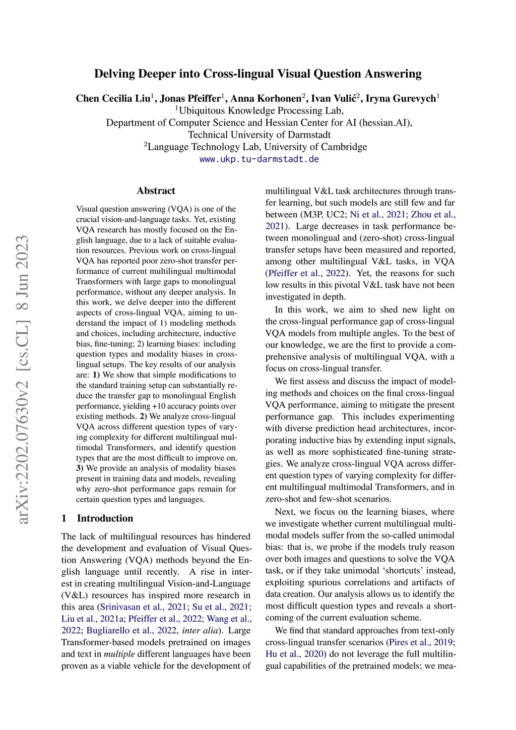 Visual question answering (VQA) is one of the crucial vision-and-language tasks. Yet, existing VQA research has mostly focused on the English language, due to a lack of suitable evaluation resources. Previous work on cross-lingual VQA has reported poor zero-shot transfer performance of current multilingual multimodal Transformers with large gaps to monolingual performance, without any deeper analysis. In this work, we delve deeper into the different aspects of cross-lingual VQA, aiming to understand the impact of 1) modeling methods and choices, including architecture, inductive bias, fine-tuning; 2) learning biases: including question types and modality biases in cross-lingual setups. The key results of our analysis are: 1) We show that simple modifications to the standard training setup can substantially reduce the transfer gap to monolingual English performance, yielding +10 accuracy points over existing methods. 2) We analyze cross-lingual VQA across different question types of varying complexity for different multilingual multimodal Transformers, and identify question types that are the most difficult to improve on. 3) We provide an analysis of modality biases present in training data and models, revealing why zero-shot performance gaps remain for certain question types and languages.