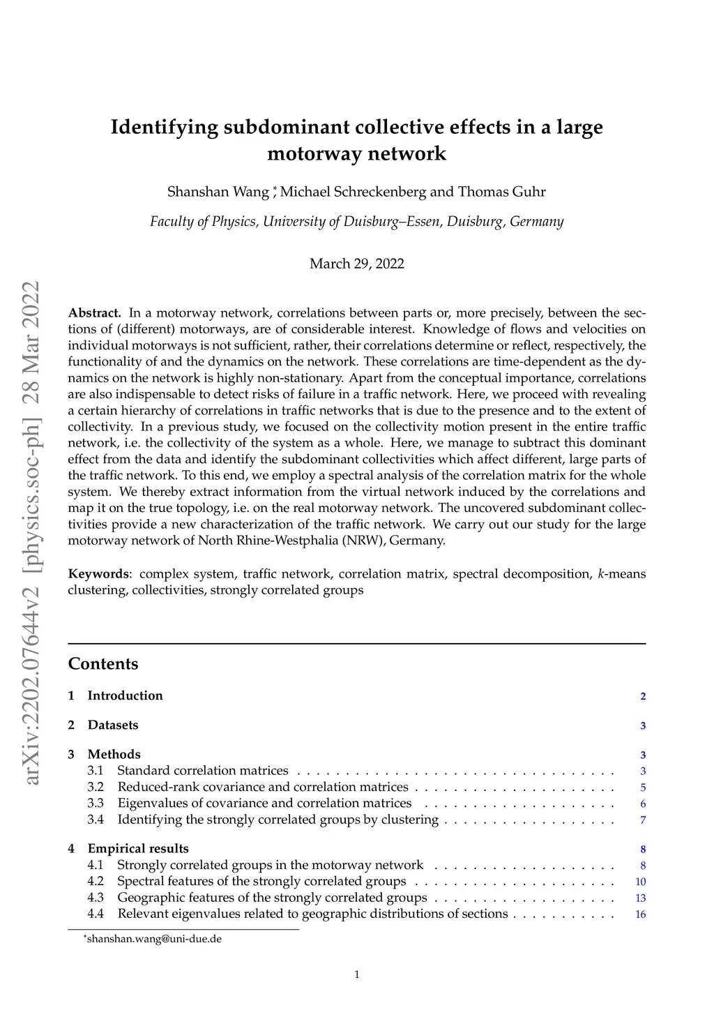 In a motorway network, correlations between parts or, more precisely, between the sections of (different) motorways, are of considerable interest. Knowledge of flows and velocities on individual motorways is not sufficient, rather, their correlations determine or reflect, respectively, the functionality of and the dynamics on the network. These correlations are time-dependent as the dynamics on the network is highly non-stationary. Apart from the conceptual importance, correlations are also indispensable to detect risks of failure in a traffic network. Here, we proceed with revealing a certain hierarchy of correlations in traffic networks that is due to the presence and to the extent of collectivity. In a previous study, we focused on the collectivity motion present in the entire traffic network, i.e. the collectivity of the system as a whole. Here, we manage to subtract this dominant effect from the data and identify the subdominant collectivities which affect different, large parts of the traffic network. To this end, we employ a spectral analysis of the correlation matrix for the whole system. We thereby extract information from the virtual network induced by the correlations and map it on the true topology, i.e. on the real motorway network. The uncovered subdominant collectivities provide a new characterization of the traffic network. We carry out our study for the large motorway network of North Rhine-Westphalia (NRW), Germany.