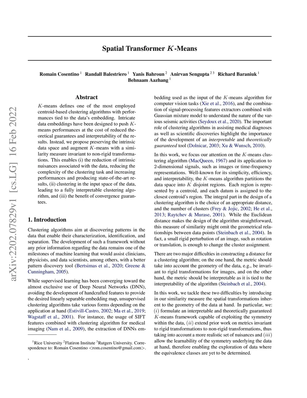 K-means defines one of the most employed centroid-based clustering algorithms with performances tied to the data's embedding. Intricate data embeddings have been designed to push -means performances at the cost of reduced theoretical guarantees and interpretability of the results. Instead, we propose preserving the intrinsic data space and augment K-means with a similarity measure invariant to non-rigid transformations. This enables (i) the reduction of intrinsic nuisances associated with the data, reducing the complexity of the clustering task and increasing performances and producing state-of-the-art results, (ii) clustering in the input space of the data, leading to a fully interpretable clustering algorithm, and (iii) the benefit of convergence guarantees.