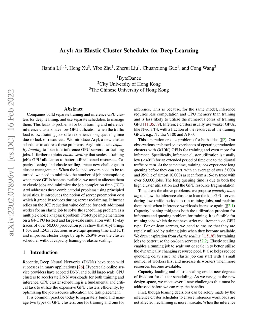 Aryl: An Elastic Cluster Scheduler for Deep Learning