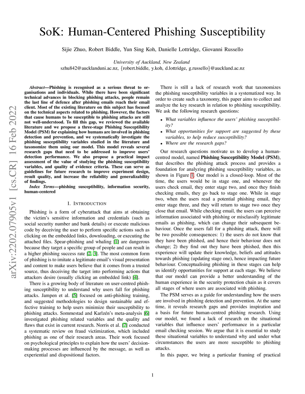 Phishing is recognised as a serious threat to organisations and individuals. While there have been significant technical advances in blocking phishing attacks, people remain the last line of defence after phishing emails reach their email client. Most of the existing literature on this subject has focused on the technical aspects related to phishing. However, the factors that cause humans to be susceptible to phishing attacks are still not well-understood. To fill this gap, we reviewed the available literature and we propose a three-stage Phishing Susceptibility Model (PSM) for explaining how humans are involved in phishing detection and prevention, and we systematically investigate the phishing susceptibility variables studied in the literature and taxonomize them using our model. This model reveals several research gaps that need to be addressed to improve users' detection performance. We also propose a practical impact assessment of the value of studying the phishing susceptibility variables, and quality of evidence criteria. These can serve as guidelines for future research to improve experiment design, result quality, and increase the reliability and generalizability of findings.