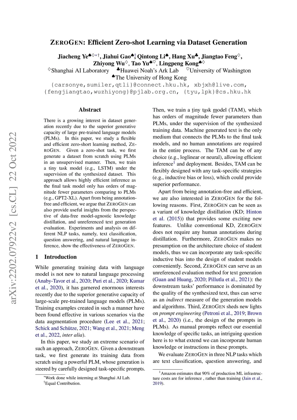 ZeroGen: Efficient Zero-shot Learning via Dataset Generation