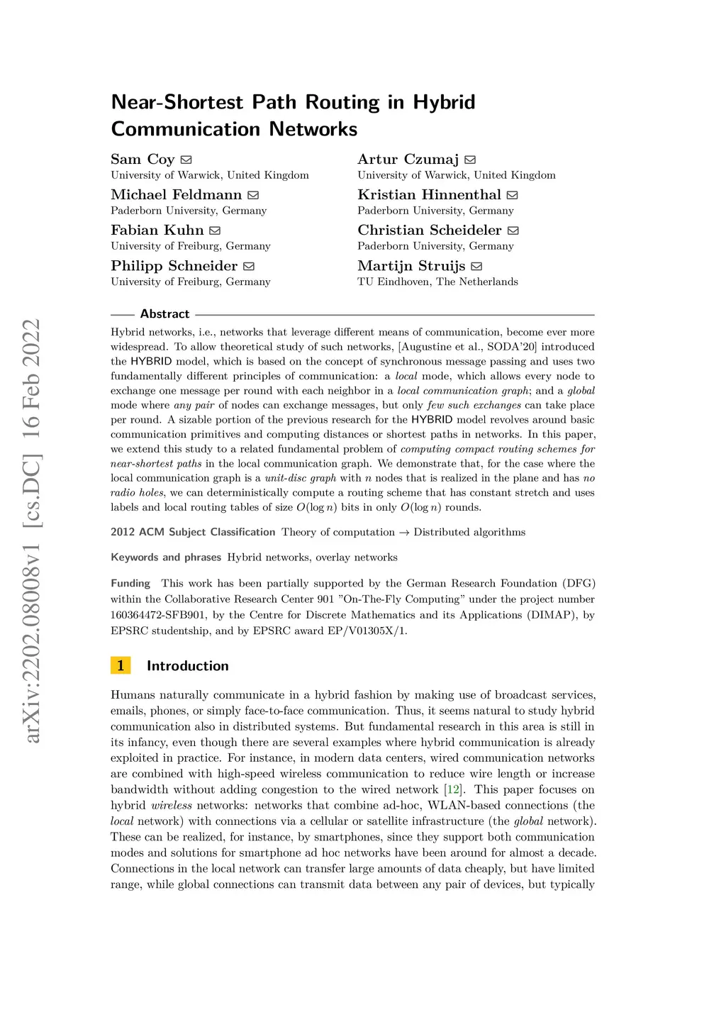 Near-Shortest Path Routing in Hybrid Communication Networks
