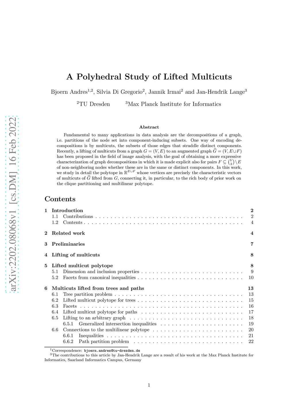 Fundamental to many applications in data analysis are the decompositions of a graph, i.e. partitions of the node set into component-inducing subsets. One way of encoding decompositions is by multicuts, the subsets of those edges that straddle distinct components. Recently, a lifting of multicuts from a graph to an augmented graph has been proposed in the field of image analysis, with the goal of obtaining a more expressive characterization of graph decompositions in which it is made explicit also for pairs of non-neighboring nodes whether these are in the same or distinct components. In this work, we study in detail the polytope in whose vertices are precisely the characteristic vectors of multicuts of lifted from , connecting it, in particular, to the rich body of prior work on the clique partitioning and multilinear polytope.