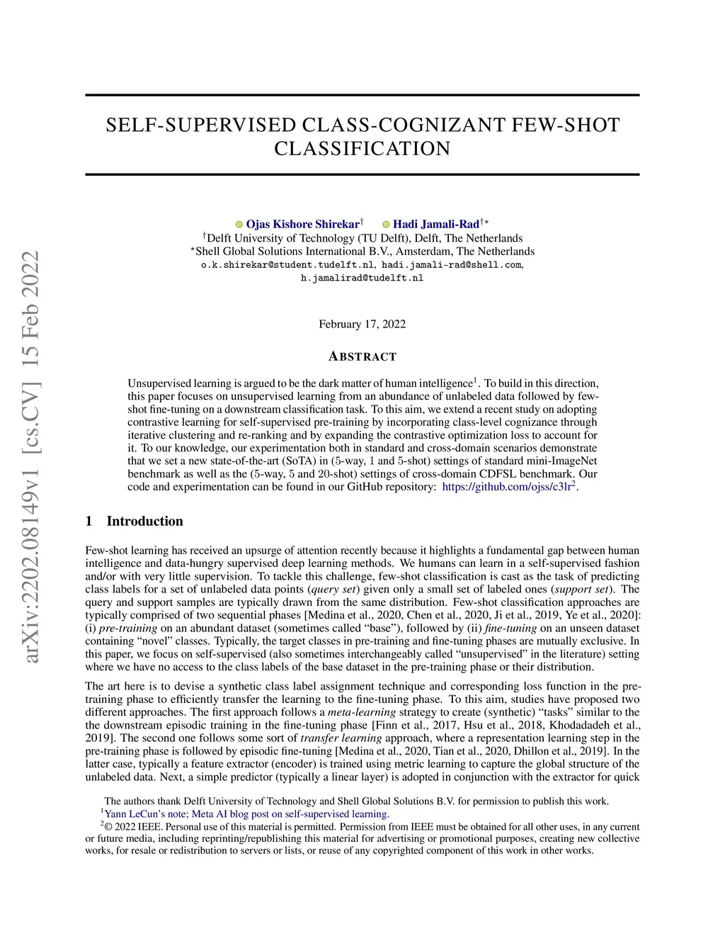 Self-Supervised Class-Cognizant Few-Shot Classification