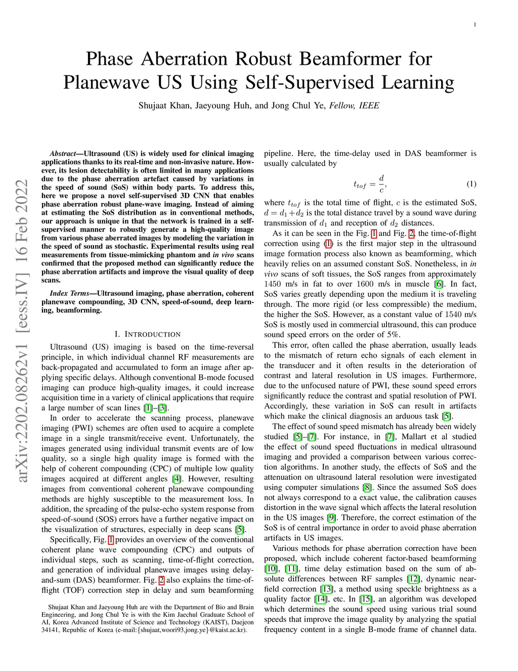 Ultrasound (US) is widely used for clinical imaging applications thanks to its real-time and non-invasive nature. However, its lesion detectability is often limited in many applications due to the phase aberration artefact caused by variations in the speed of sound (SoS) within body parts. To address this, here we propose a novel self-supervised 3D CNN that enables phase aberration robust plane-wave imaging. Instead of aiming at estimating the SoS distribution as in conventional methods, our approach is unique in that the network is trained in a self-supervised manner to robustly generate a high-quality image from various phase aberrated images by modeling the variation in the speed of sound as stochastic. Experimental results using real measurements from tissue-mimicking phantom and \textit{in vivo} scans confirmed that the proposed method can significantly reduce the phase aberration artifacts and improve the visual quality of deep scans.