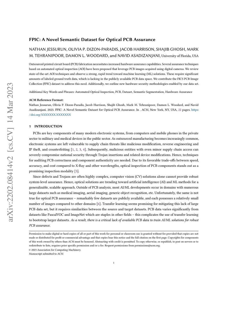 FPIC: A Novel Semantic Dataset for Optical PCB Assurance