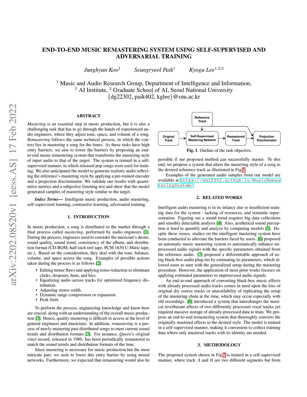 Mastering is an essential step in music production, but it is also a challenging task that has to go through the hands of experienced audio engineers, where they adjust tone, space, and volume of a song. Remastering follows the same technical process, in which the context lies in mastering a song for the times. As these tasks have high entry barriers, we aim to lower the barriers by proposing an end-to-end music remastering system that transforms the mastering style of input audio to that of the target. The system is trained in a self-supervised manner, in which released pop songs were used for training. We also anticipated the model to generate realistic audio reflecting the reference's mastering style by applying a pre-trained encoder and a projection discriminator. We validate our results with quantitative metrics and a subjective listening test and show that the model generated samples of mastering style similar to the target.