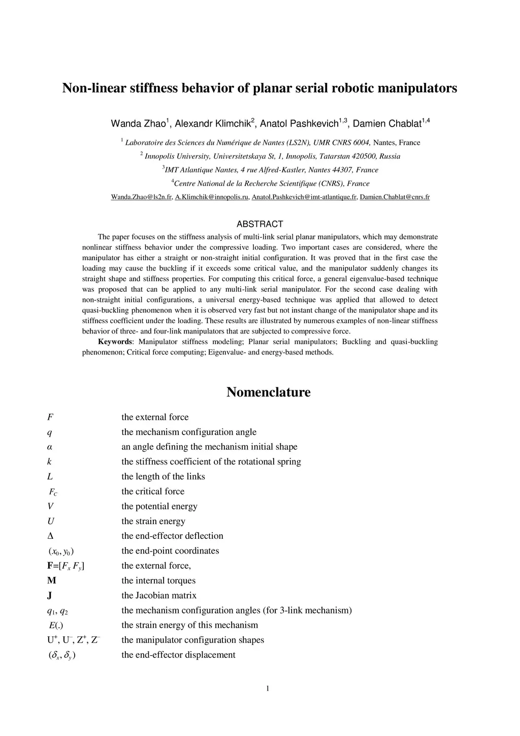 Non-linear stiffness behavior of planar serial robotic manipulators