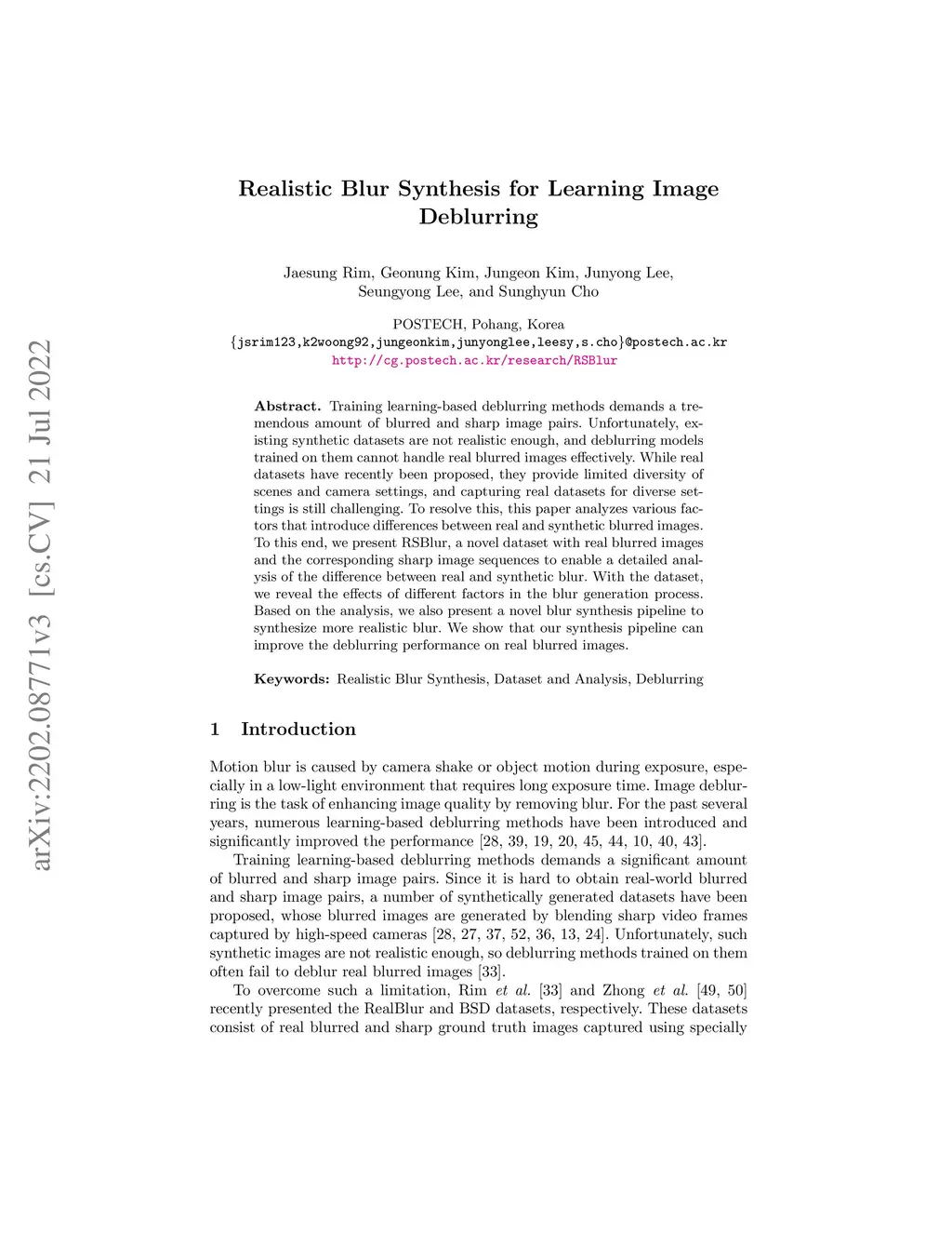 Realistic Blur Synthesis for Learning Image Deblurring