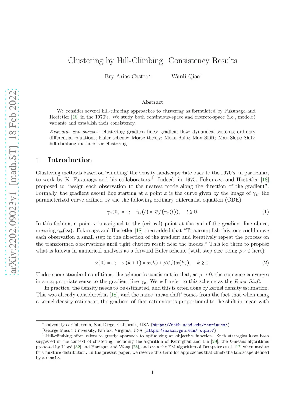 We consider several hill-climbing approaches to clustering as formulated by Fukunaga and Hostetler in the 1970's. We study both continuous-space and discrete-space (i.e., medoid) variants and establish their consistency.