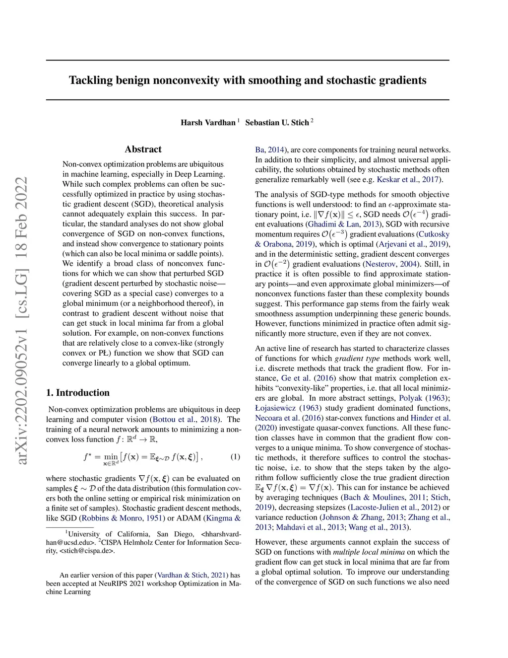 Tackling benign nonconvexity with smoothing and stochastic gradients