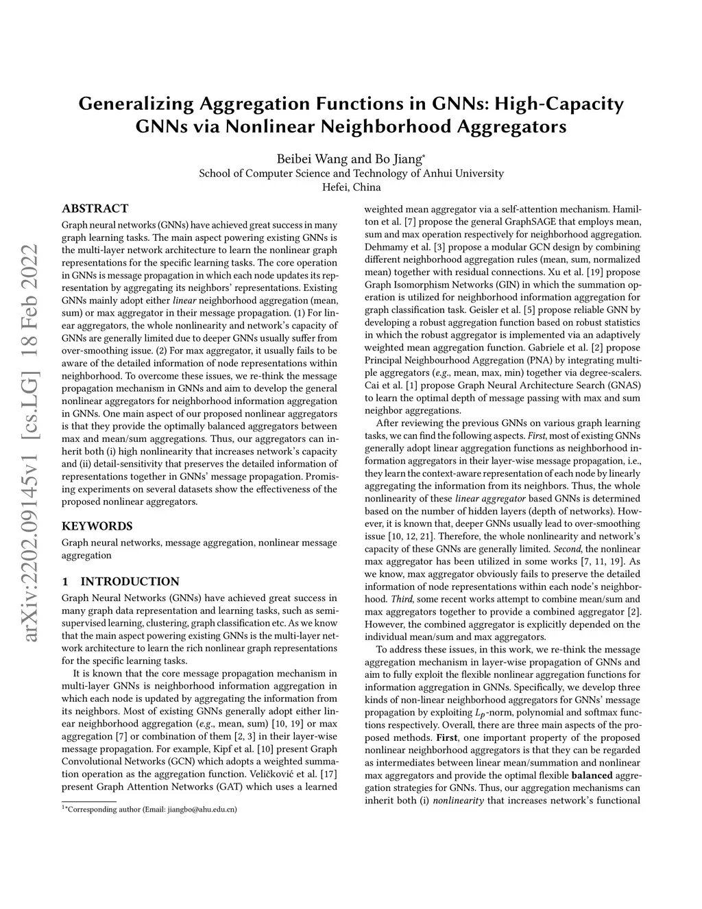 Graph neural networks (GNNs) have achieved great success in many graph learning tasks. The main aspect powering existing GNNs is the multi-layer network architecture to learn the nonlinear graph representations for the specific learning tasks. The core operation in GNNs is message propagation in which each node updates its representation by aggregating its neighbors' representations. Existing GNNs mainly adopt either linear neighborhood aggregation (mean,sum) or max aggregator in their message propagation. (1) For linear aggregators, the whole nonlinearity and network's capacity of GNNs are generally limited due to deeper GNNs usually suffer from over-smoothing issue. (2) For max aggregator, it usually fails to be aware of the detailed information of node representations within neighborhood. To overcome these issues, we re-think the message propagation mechanism in GNNs and aim to develop the general nonlinear aggregators for neighborhood information aggregation in GNNs. One main aspect of our proposed nonlinear aggregators is that they provide the optimally balanced aggregators between max and mean/sum aggregations. Thus, our aggregators can inherit both (i) high nonlinearity that increases network's capacity and (ii) detail-sensitivity that preserves the detailed information of representations together in GNNs' message propagation. Promising experiments on several datasets show the effectiveness of the proposed nonlinear aggregators.
