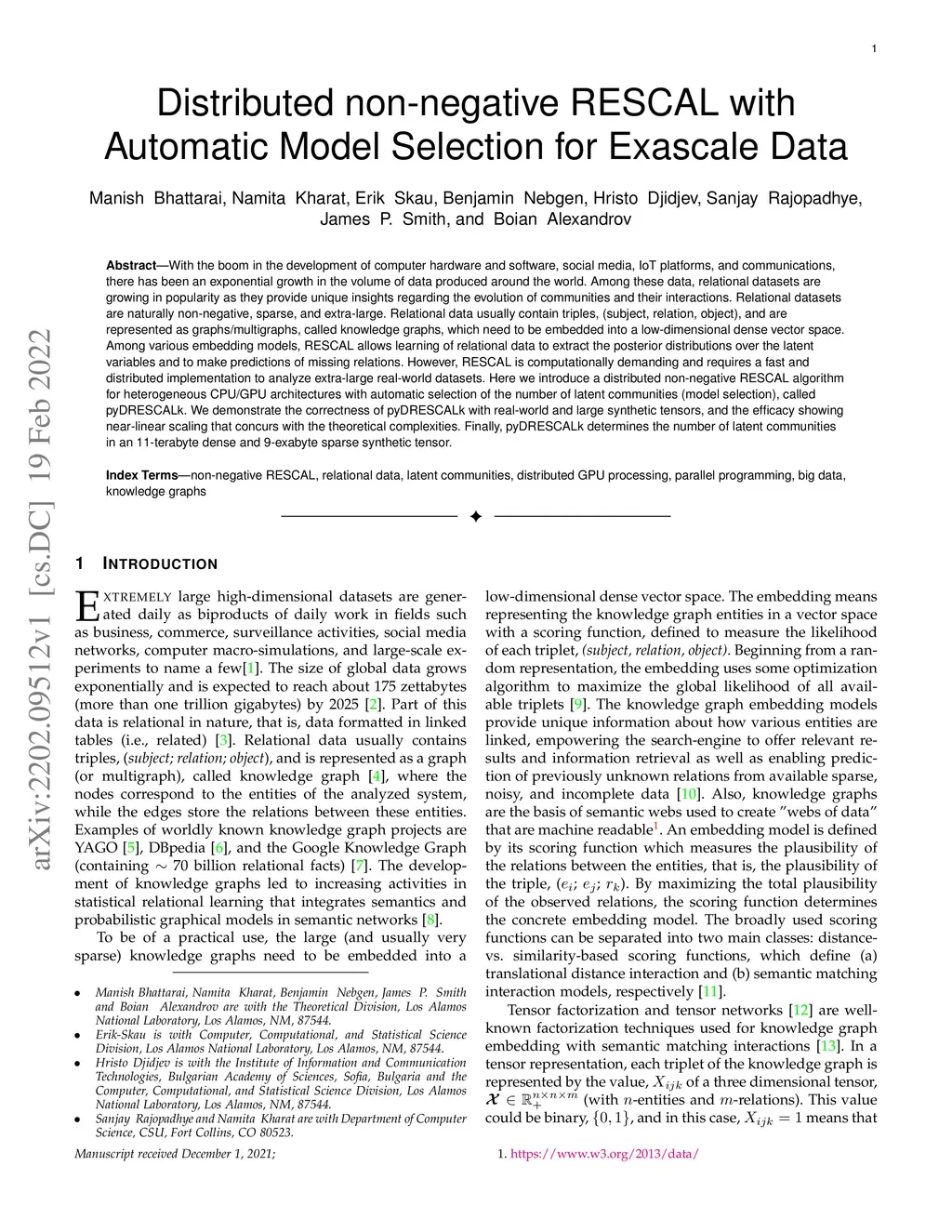 Distributed non-negative RESCAL with Automatic Model Selection for