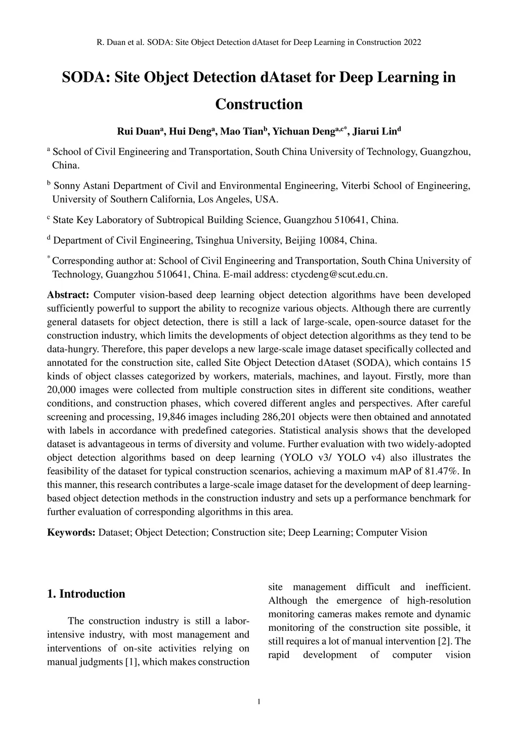 SODA: Site Object Detection dAtaset for Deep Learning in Construction