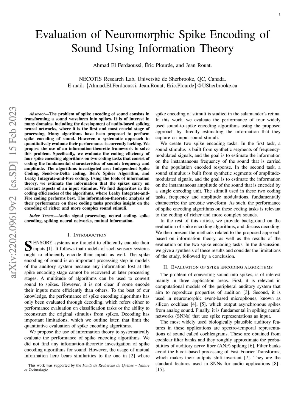Evaluation of Neuromorphic Spike Encoding of Sound Using Information