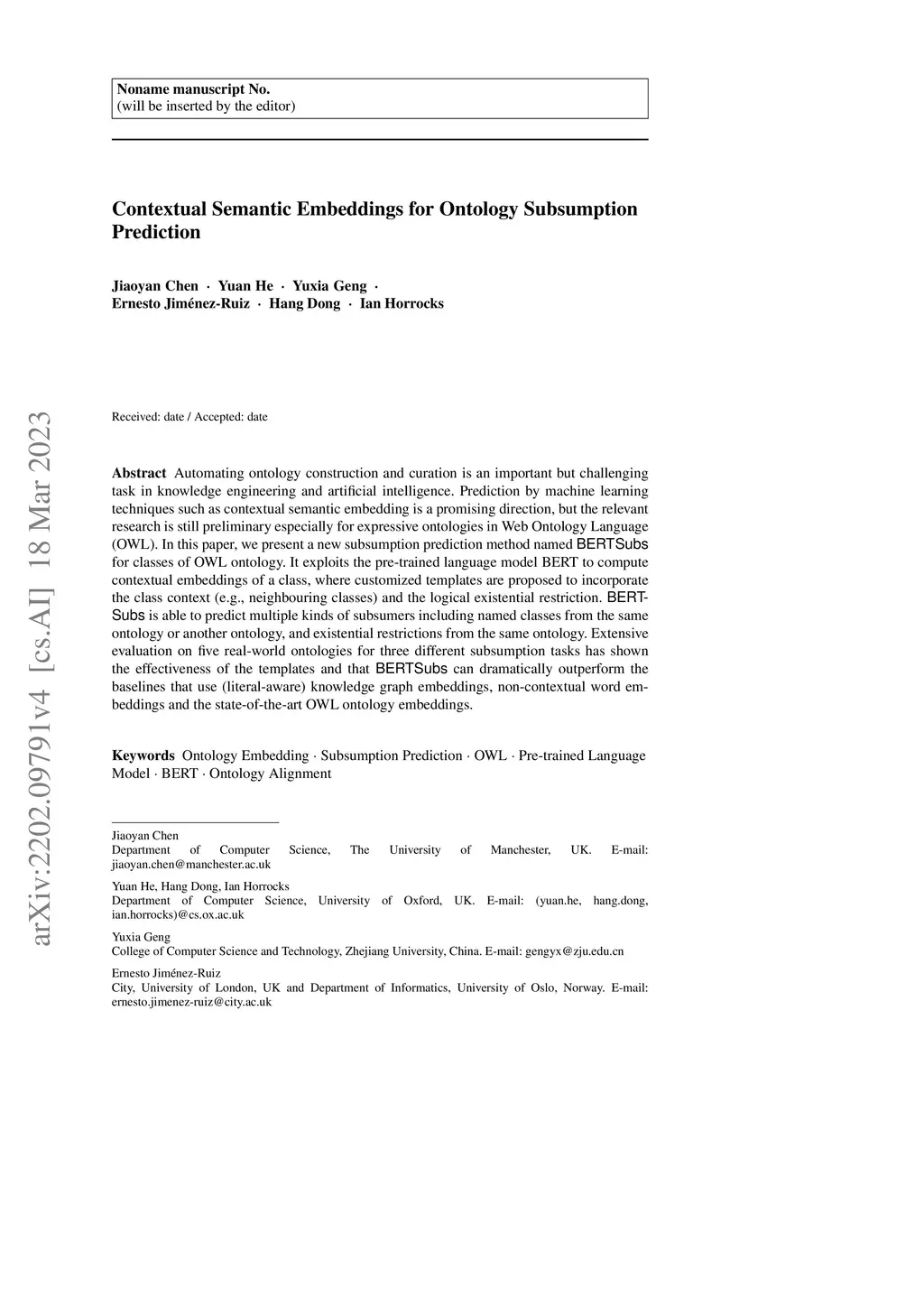 Contextual Semantic Embeddings for Ontology Subsumption Prediction