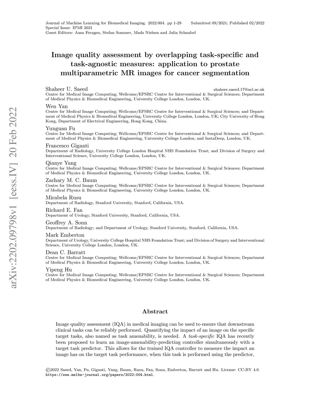 Image quality assessment by overlapping task-specific and task-agnostic