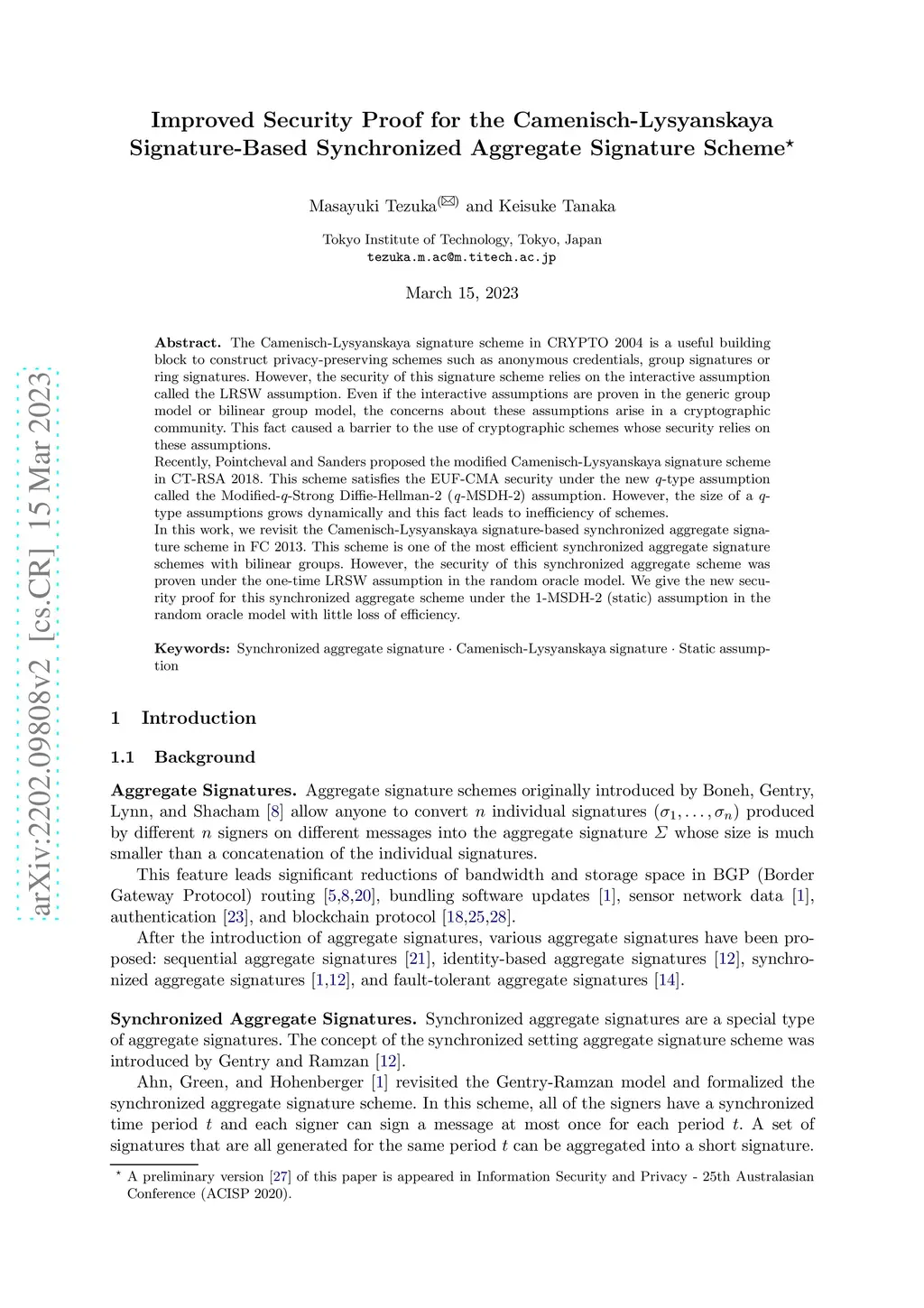 Synchronized Aggregate Signature Scheme