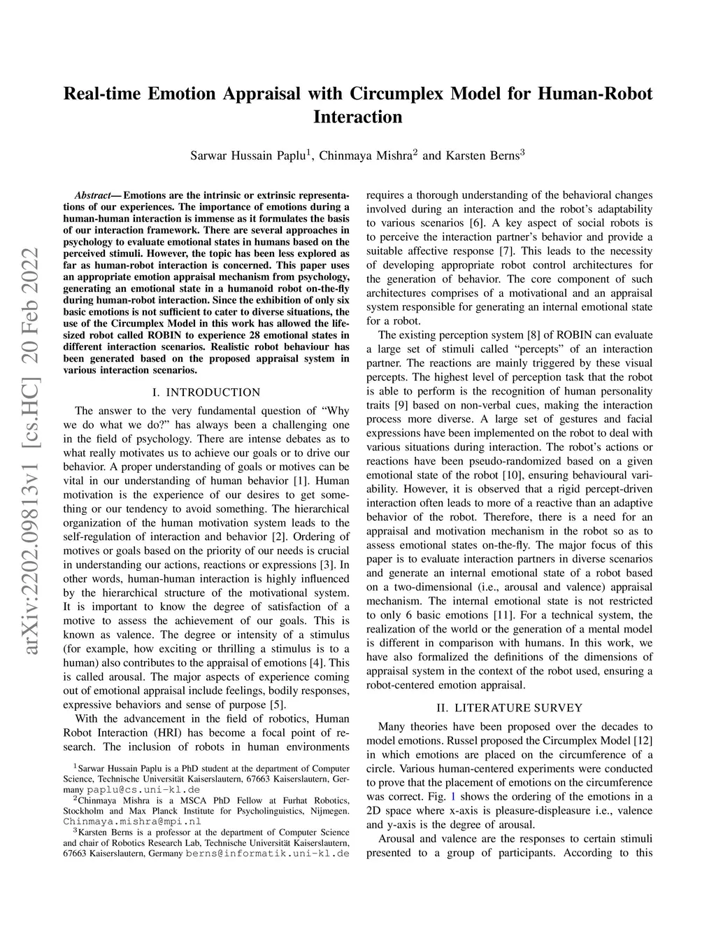 Real-time Emotion Appraisal with Circumplex Model for Human-Robot