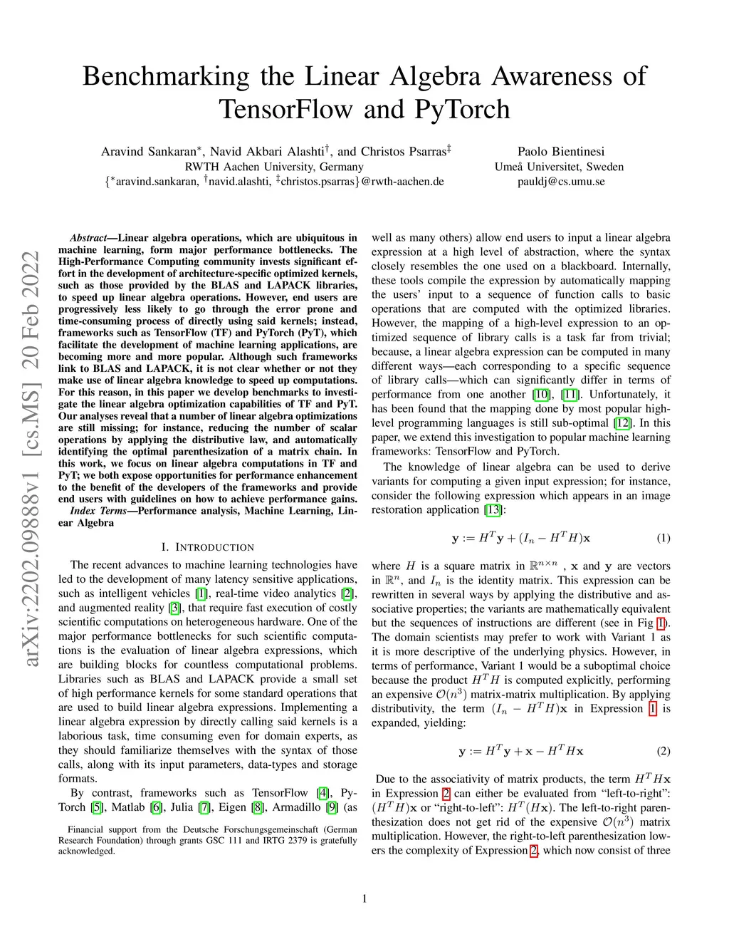 Benchmarking the Linear Algebra Awareness of TensorFlow and PyTorch