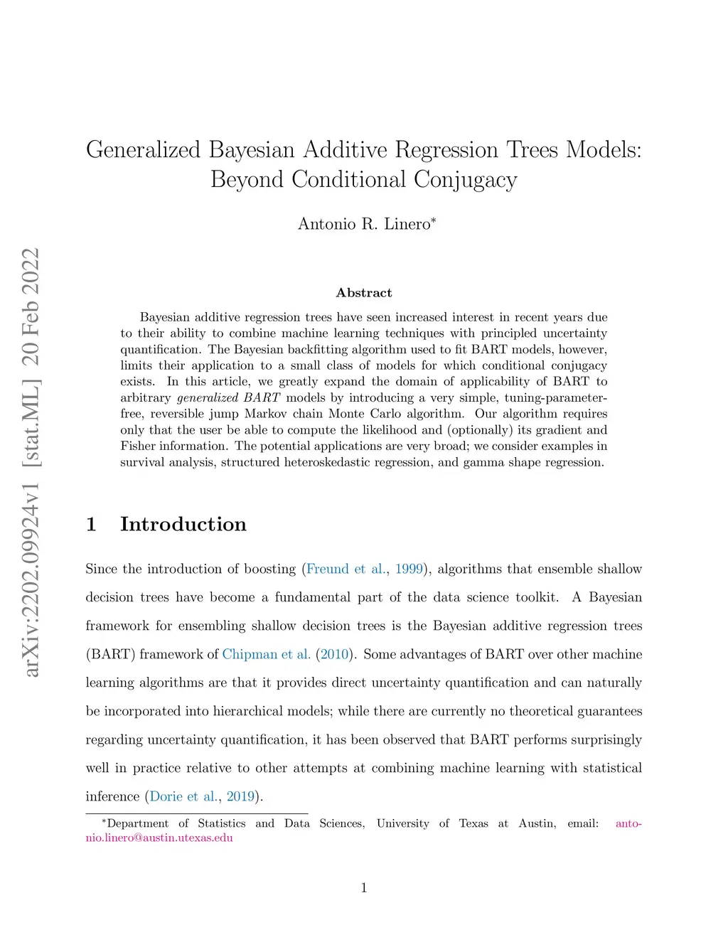 Bayesian additive regression trees have seen increased interest in recent years due to their ability to combine machine learning techniques with principled uncertainty quantification. The Bayesian backfitting algorithm used to fit BART models, however, limits their application to a small class of models for which conditional conjugacy exists. In this article, we greatly expand the domain of applicability of BART to arbitrary \emph{generalized BART} models by introducing a very simple, tuning-parameter-free, reversible jump Markov chain Monte Carlo algorithm. Our algorithm requires only that the user be able to compute the likelihood and (optionally) its gradient and Fisher information. The potential applications are very broad; we consider examples in survival analysis, structured heteroskedastic regression, and gamma shape regression.