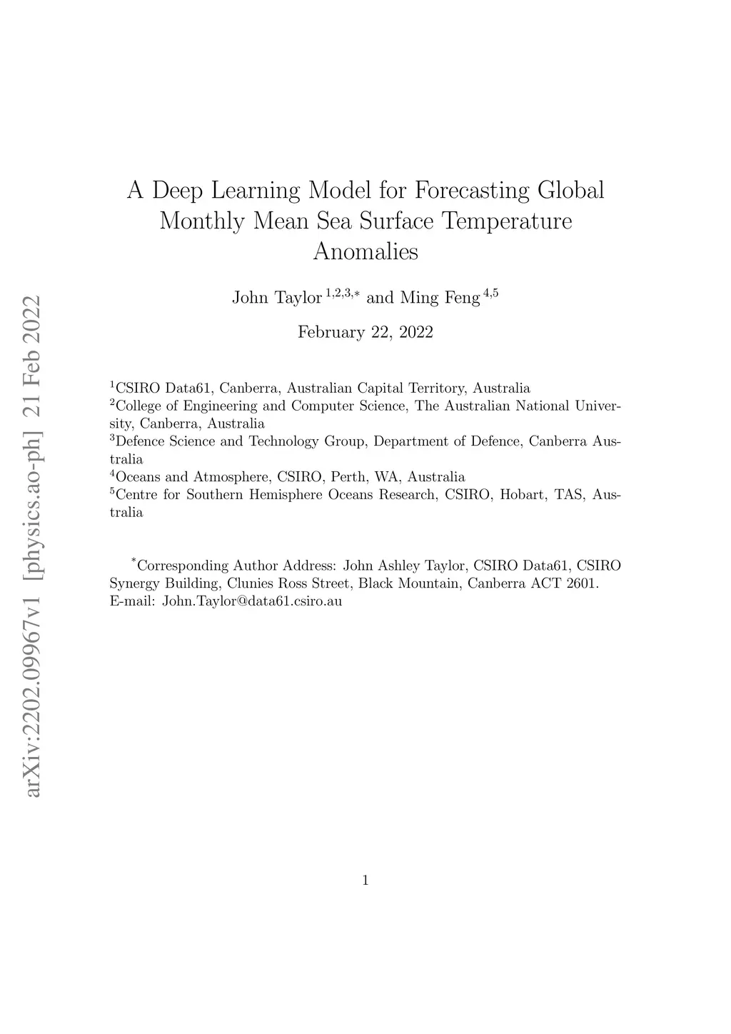 A Deep Learning Model for Forecasting Global Monthly Mean Sea Surface