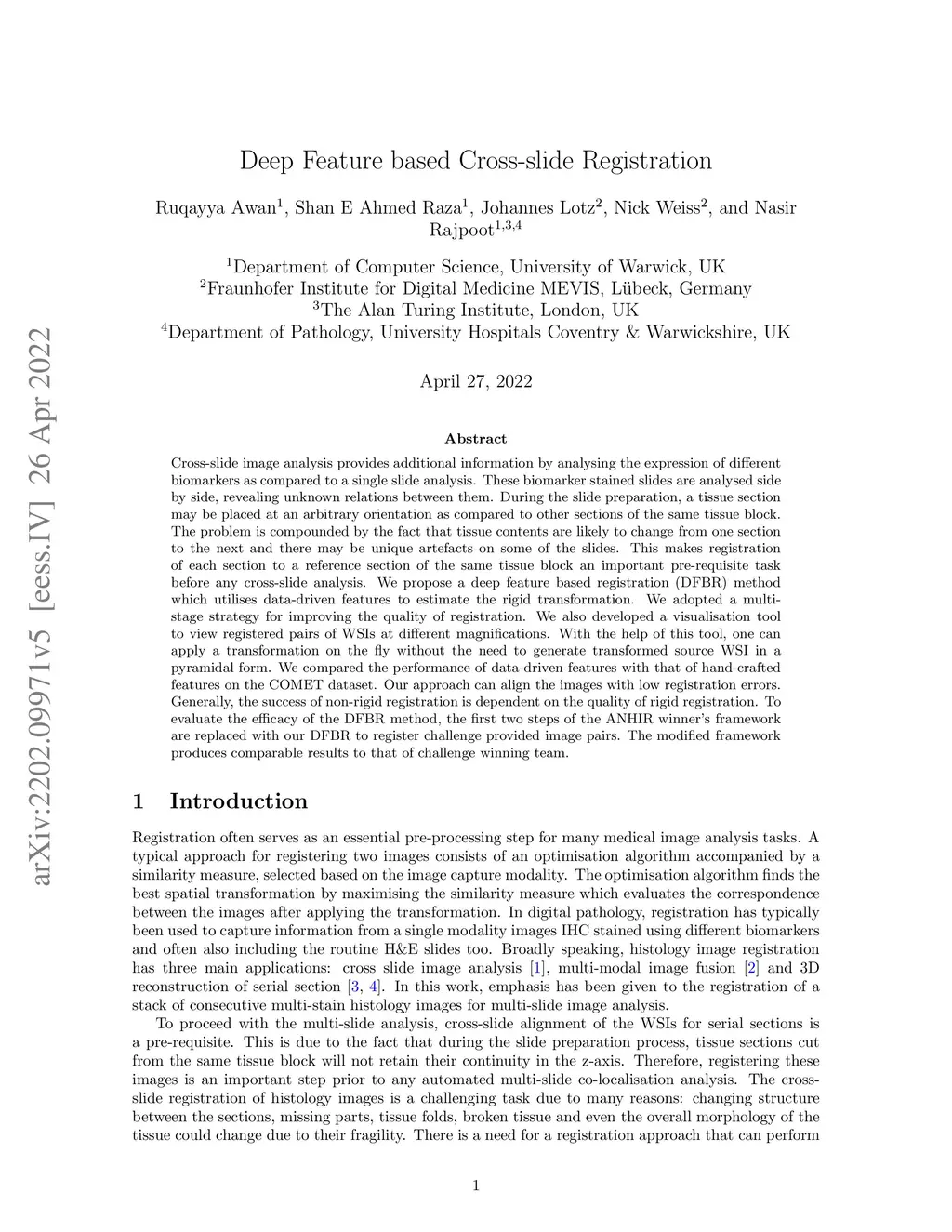 Deep Feature based Cross-slide Registration