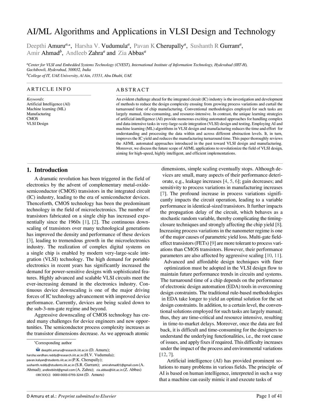 AI/ML Algorithms and Applications in VLSI Design and Technology